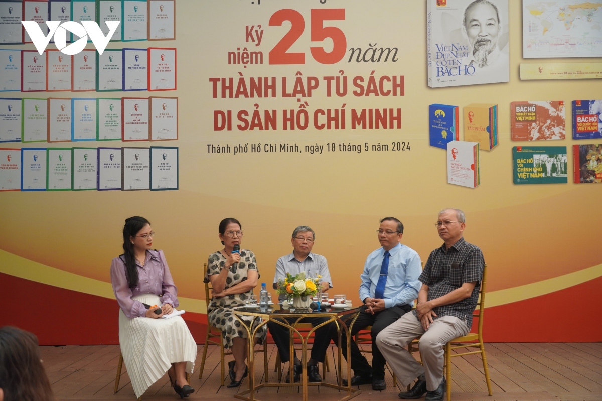 Những tác giả, diễn giả giao lưu nhân kỷ niệm 25 năm thành lập Tủ sách Di sản Hồ Chí Minh. Ảnh: VOV |