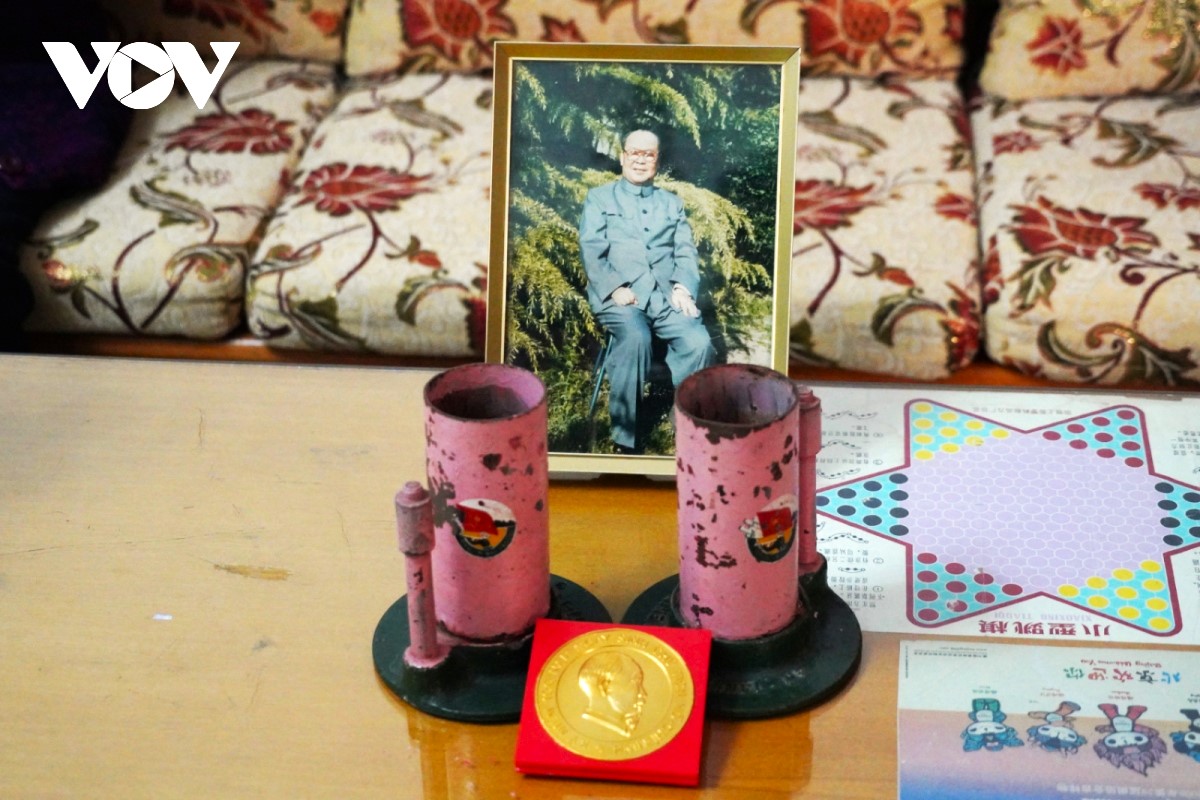 Ảnh tướng Vi Quốc Thanh cùng kỷ vật về Điện Biên Phủ và Bác Hồ. Ảnh: VOV |