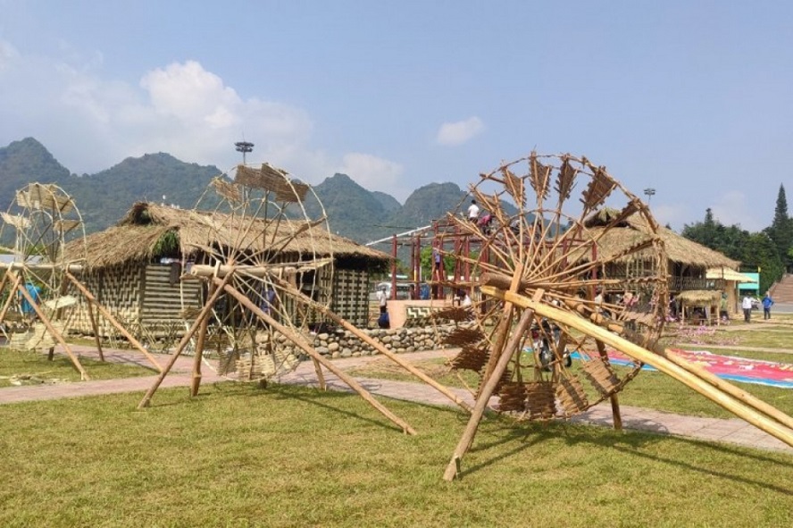 Công tác chuẩn bị tại không gian văn hóa tại Quảng trường Nhân dân tỉnh Lai Châu. Ảnh: Khắc Kiên/ VOV |