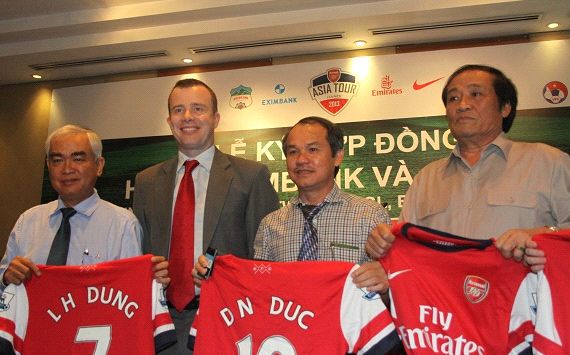 (VOV5) - Trận đấu giao hữu bóng đá quốc tế giữa đội tuyển quốc gia Việt Nam và Câu lạc bộ Arsenal (Vương quốc Anh) sẽ diễn ra tối 17/7/2013 trên sân vận động quốc gia Mỹ Đình ở thủ đô Hà Nội. Đây là lần đầu tiên Câu lạc bộ Arsenal sang thi đấu tại Việt Nam . Lễ ký hợp đồng giữa Hoàng Anh Gia Lai, Ngân hàng Thương Mại Cổ phần xuất nhập khẩu Việt Nam (Eximbank) và Câu lạc bộ Arsenal về chuyến du đấu Việt Nam của Arsenal diễn ra chiều 9/5 tại Hà Nội.
