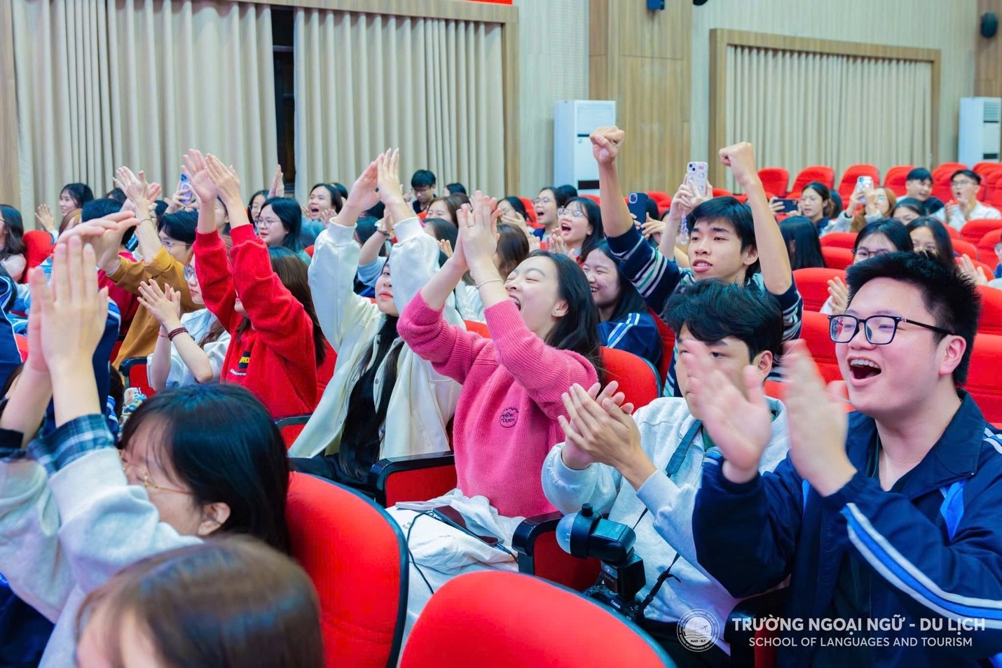 Các sinh viên cổ vũ cuộc thi. |