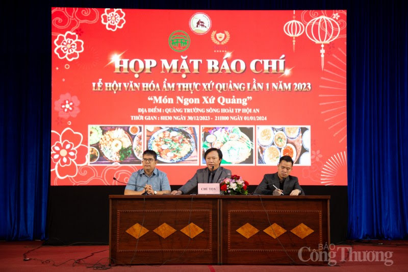 Chiều nay (4/12), tại thành phố Hội An, Sở Văn hóa - Thể thao và Du lịch, Hiệp hội Văn hóa Ẩm thực tỉnh Quảng Nam tổ chức họp báo giới thiệu Chương trình Lễ hội Văn hóa Ẩm thực xứ Quảng lần thứ 1 năm 2023, sẽ diễn ra từ ngày 30/12/2023 đến ngày 1/1/ 2024 tại thành phố Hội An.