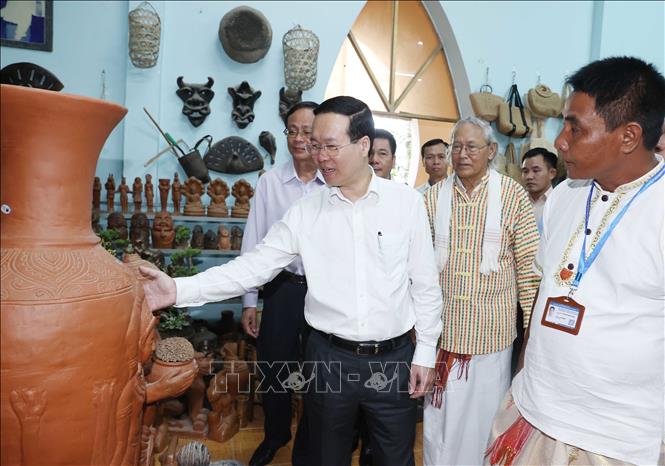 Trước đó, chiều qua, Chủ tịch nước Võ Văn Thưởng tham quan và gặp mặt các nghệ nhân, người dân Làng gốm Bàu Trúc, thị trấn Phước Dân, huyện Ninh Phước.