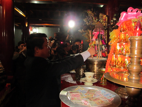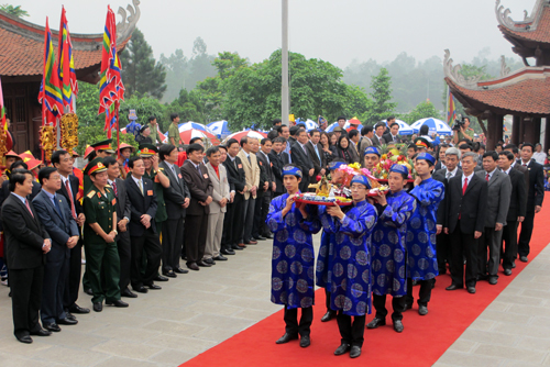 Tại Đền thờ Đức Quốc Tổ, các đồng chí lãnh đạo 13 huyện, thành, thị tiến dâng lễ vật là các sản vật đặc trưng, tiêu biểu của các địa phương, các vùng miền trong tỉnh.