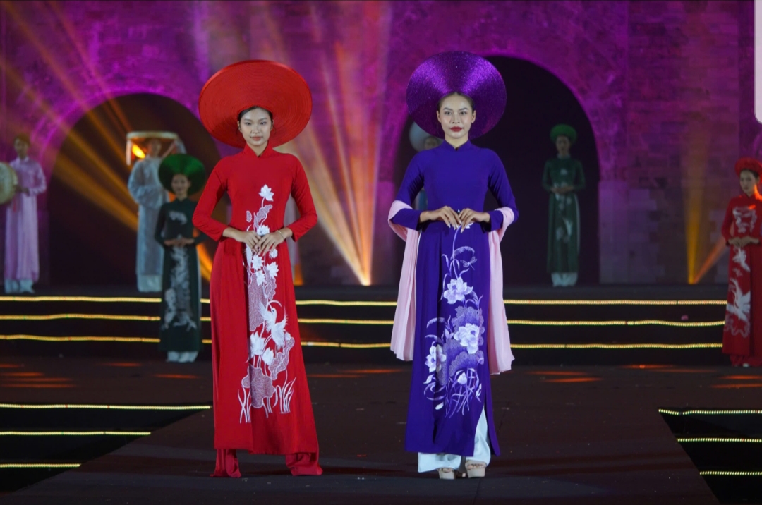 Các người mẫu trình diễn áo dài trong đêm bế mạc |