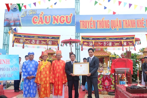 Sáng 20/2, tại đường Nguyễn Tất Thành, phường Thanh Khê Đông, quận Thanh Khê, Sở Văn hóa Thể Thao thành phố Đà Nẵng phối hợp với UBND quận Thanh Khê tổ chức đón bằng công nhận Lễ hội cầu ngư tại thành phố Đà Nẵng là di sản Văn hóa phi vật thể quốc gia