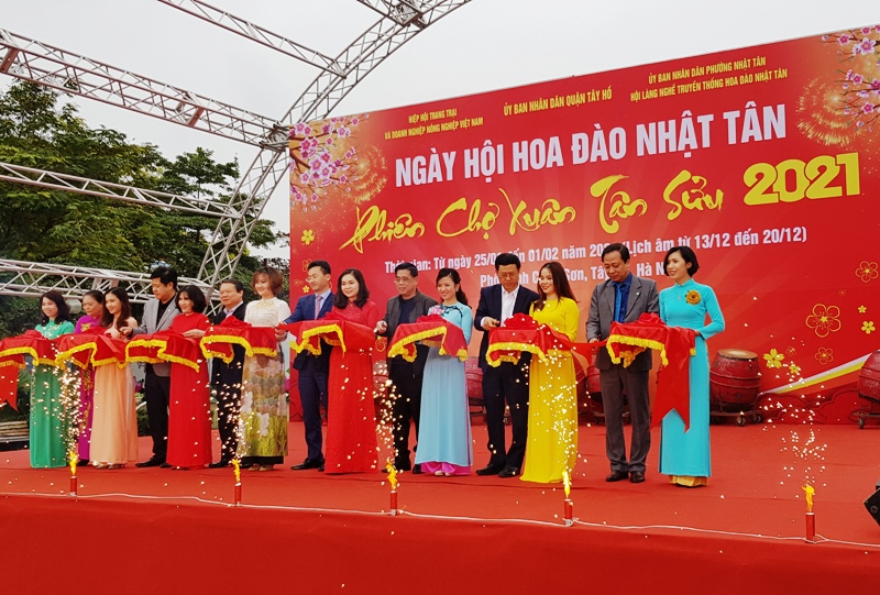 Lễ hội hoa đào Nhật Tân 2021 khai mạc sáng 27/1 tại phố đi bộ Trịnh Công Sơn, quận Tây Hồ, Hà Nội. Đây là năm thứ 2, Ủy ban nhân dân phường Nhật Tân, quận Tây Hồ tổ chức sự kiện này. Lễ hội hoa đào Nhật Tân 2021 có sự tham gia của 20 nhà vườn trưng bày các loại hoa đào của làng hoa Nhật Tân và cây cảnh bonsai.