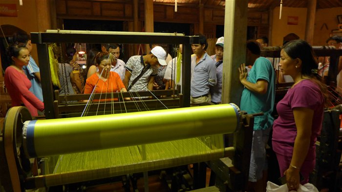 | Trình diễn dệt lụa tại Hội An. Ảnh Hải Đường |