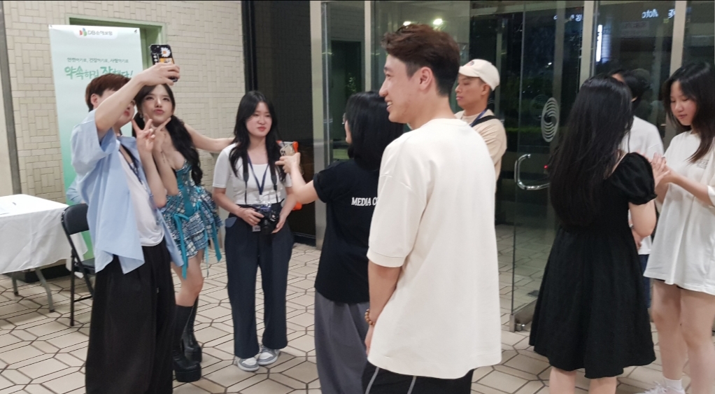 Khán giả vây quanh ca sĩ Ly Ly (người thứ hai từ trái sang) chụp ảnh. Ảnh: Ngọc Anh |