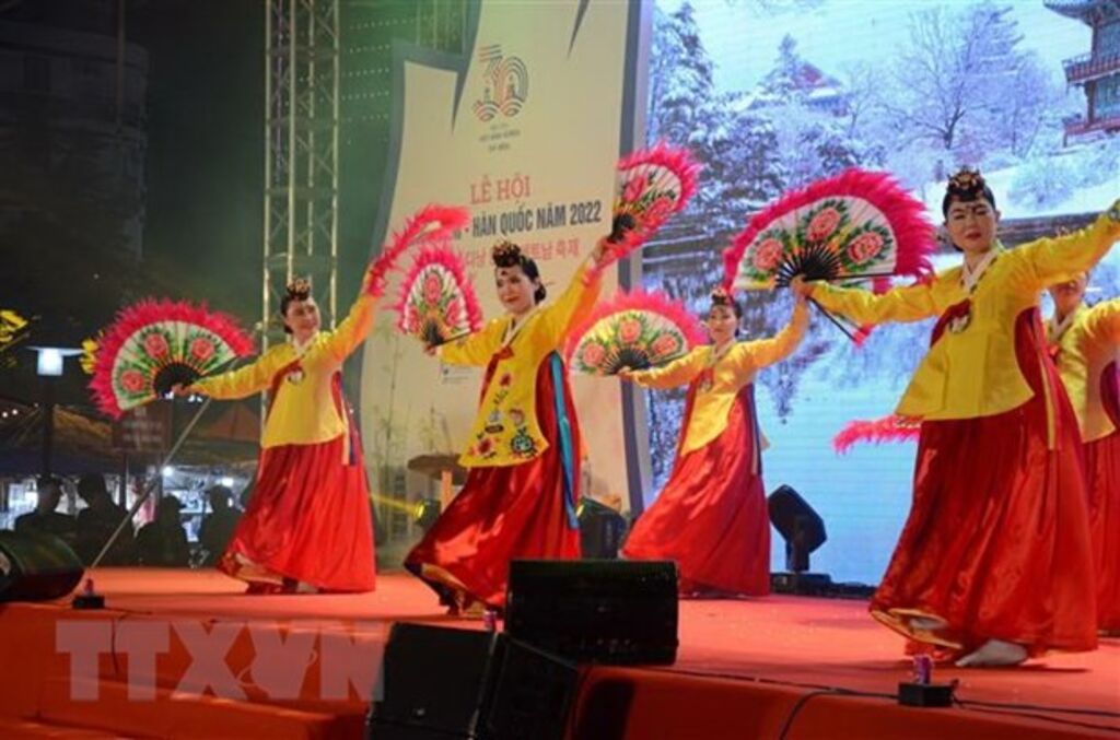 Tiết mục múa cổ truyền của Hàn Quốc tại Lễ hội Việt Nam-Hàn Quốc năm 2022 tại Đà Nẵng - Ảnh: Quốc Dũng/TTXVN |