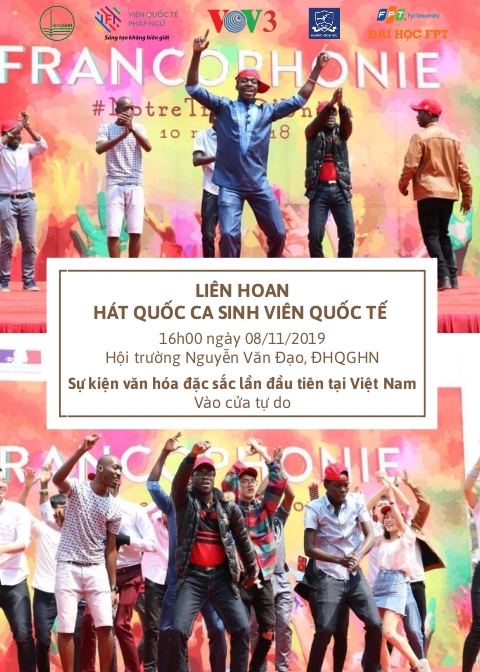 “Liên hoan hát Quốc ca sinh viên quốc tế” sẽ diễn ra vào lúc 16h chiều 08/11/2019 tại hội trường Nguyễn Văn Đạo – Đại học Quốc gia Hà Nội. Sự kiện nằm trong khuôn khổ Hội thảo “Quốc tế hóa Giáo dục Đại học phi Anh ngữ”, do Viện Quốc tế Pháp ngữ IFI phối hợp với Ban Âm nhạc VOV3, Đài tiếng nói Việt Nam và trường Đại học Ngoại ngữ, ĐHQGHN, tổ chức.