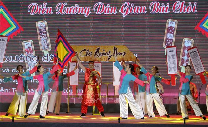 Tiết mục biểu diễn của các đoàn nghệ thuật quần chúng tại Liên hoan. Ảnh: Văn Tý/TTXVN |