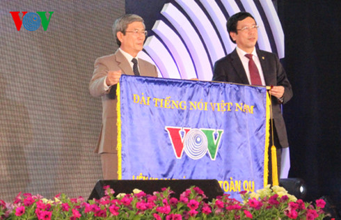| Tại Liên hoan phát thanh toàn quốc lần thứ XI, Tổng Giám đốc Đài TNVN trao cờ cho đơn vị đăng cai Liên hoan phát thanh lần thứ XII - Đài PT-TH Khánh Hòa. |