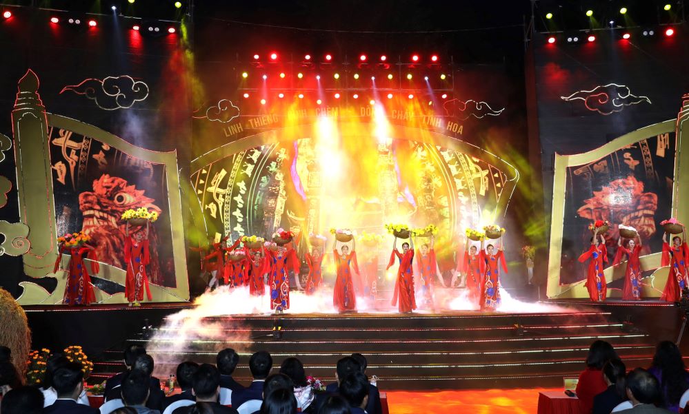 Chương trình nghệ thuật “Linh thiêng đình Chèm - Dòng chảy tinh hoa”. Ảnh: hanoimoi.vn |