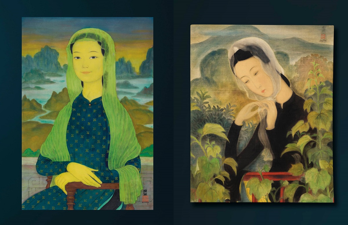 ''Mona Lisa'' của Mai Trung Thứ (trái) và ''Thiếu nữ choàng khăn'' của Lê Phổ. Ảnh tư liệu: TTXVN |
