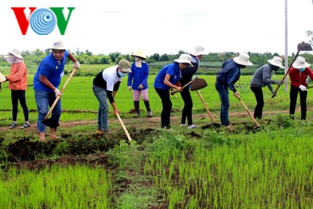 | Giúp người dân nạo vét kênh mương |