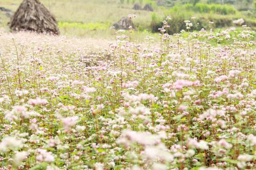 | Cánh đồng hoa Tam giác mạch trải khắp cao nguyên đá Đồng Văn. Ảnh: TTXVN. |