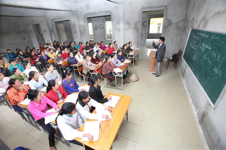 | Một lớp dạy nghề cho người lao động tại Trung tâm dạy nghề huyện Lập Thạch, tỉnh Vĩnh Phúc. (Ảnh: Anh Tuấn – TTXVN) |