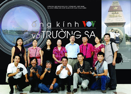 | Tổng Giám đốc Đài TNVN Nguyễn Đăng Tiến (đứng thứ 5 từ trái sang) cùng các phóng viên nhà Đài từng tác nghiệp ở Trường Sa. |