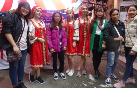 Có thể không phải là những đầu bếp chuyên nghiệp nhưng nhưng những chiếc bánh kếp của Nga, món sa lát trứng khoai tây của các bạn Đức, món cơm gà cà-ri của sinh viên Ấn Độ, món canh củ cải đỏ, hay món cải muối kim chi Hàn Quốc, shushi Nhật Bản, bánh há cảo Trung Quốc, bánh hấp gối của Ba Lan, trà Thái Lan, phở cuốn, nem rán Việt Nam đều ngon tuyệt vời. Bởi vì những người bạn trẻ đó, qua món ăn muốn quảng bá nét văn hóa đặc trưng của đất nước mình. Xinh xắn trong bộ váy áo truyền thống Nga đỏ trắng rực rỡ, bạn Natalia hào hứng giới thiệu món ăn:
