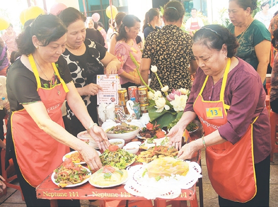 | Thi nấu ăn trong Ngày hội Gia đình Việt Nam tại Trung tâm triển lãm Văn hóa - Nghệ thuật Việt Nam (Ảnh: nhandan.com.vn) |