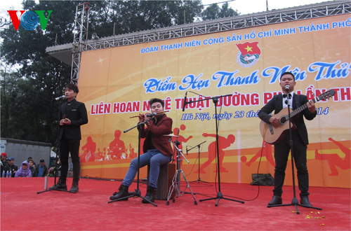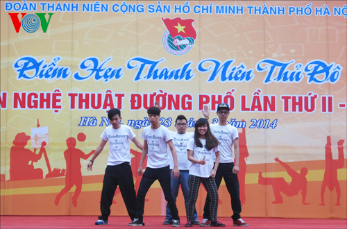 (VOV5) - Mỗi năm một lần, chương trình Liên hoan nghệ thuật đường phố, do Đoàn thanh niên cộng sản Hồ Chí Minh thành phố Hà Nội tổ chức, mang đến cho các bạn trẻ Thủ đô một không gian sôi động, náo nhiệt. Trong không gian mở với nhiều loại hình nghệ thuật đa dạng từ dân gian đến hiện đại đan xen, Liên hoan nghệ thuật đường phố Hà Nội năm 2014 tạo nên một không khí ngày hội đua tài tưng bừng, nhiều màu sắc mới lạ.