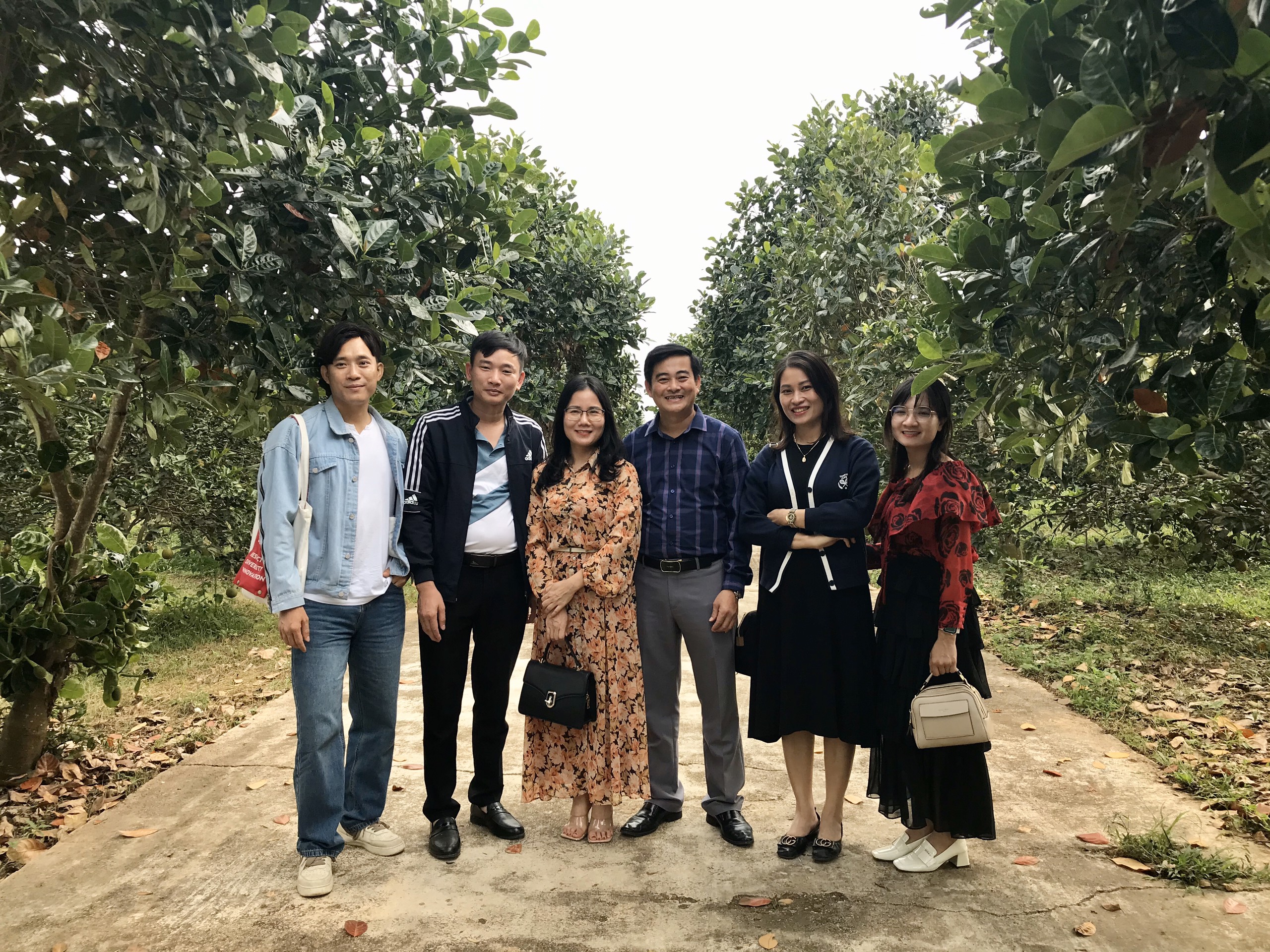Chụp ảnh lưu niệm tại nhà vườn Định Tâm. Ảnh: Lan Phương |