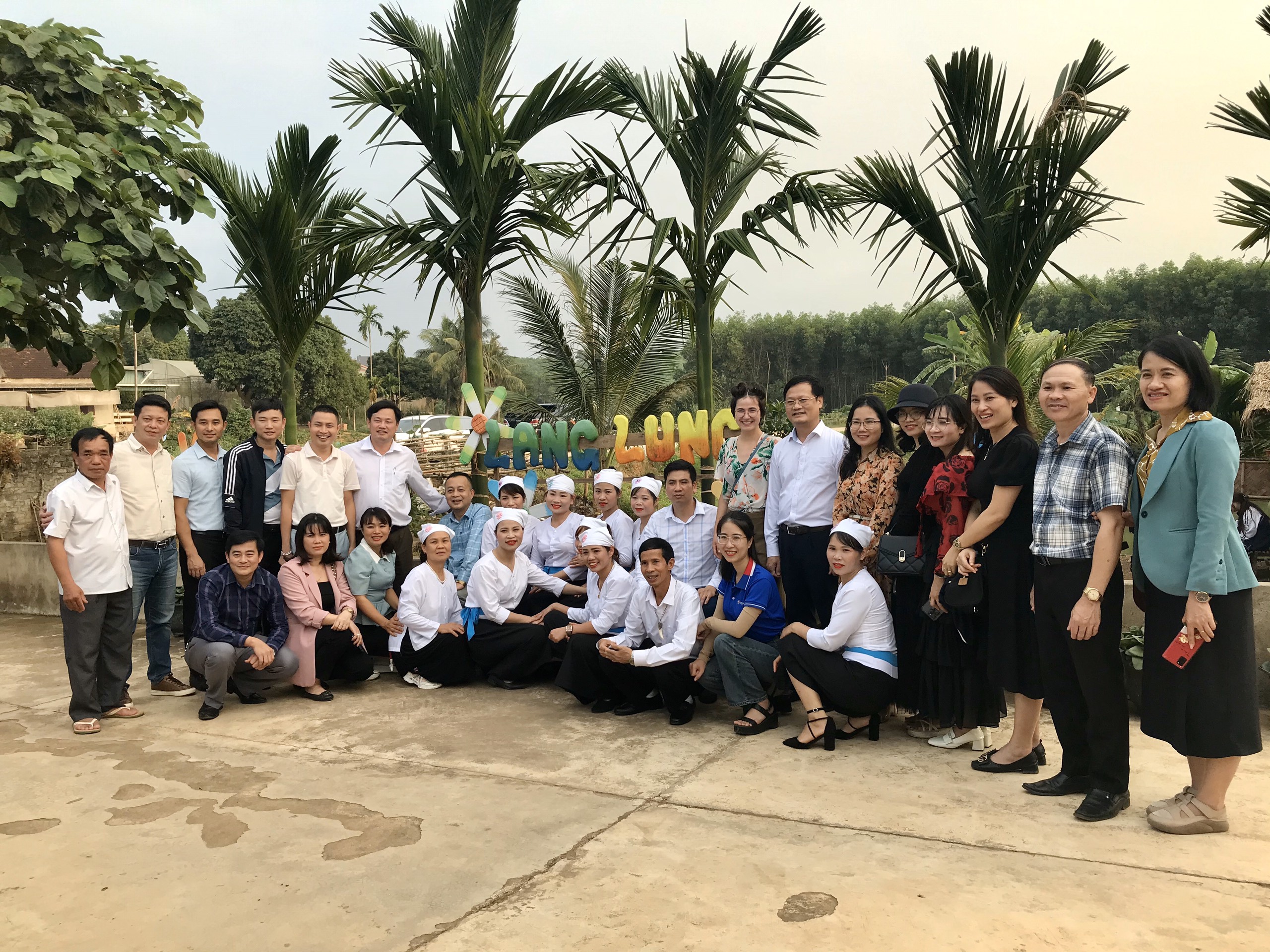 Ông Nguyễn Quý Linh, Giám đốc Sở Khoa học và Công nghệ tỉnh Nghệ An, (thứ 7 từ phải sang) chụp ảnh cùng đoàn tham gia tour trải nghiệm văn hoá cộng đồng dân tộc Thổ. |