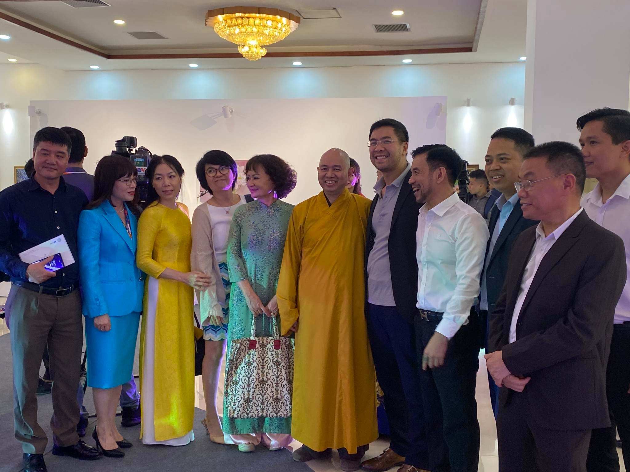 Khách tham quan chụp ảnh cùng Ban tổ chức triển lãm |