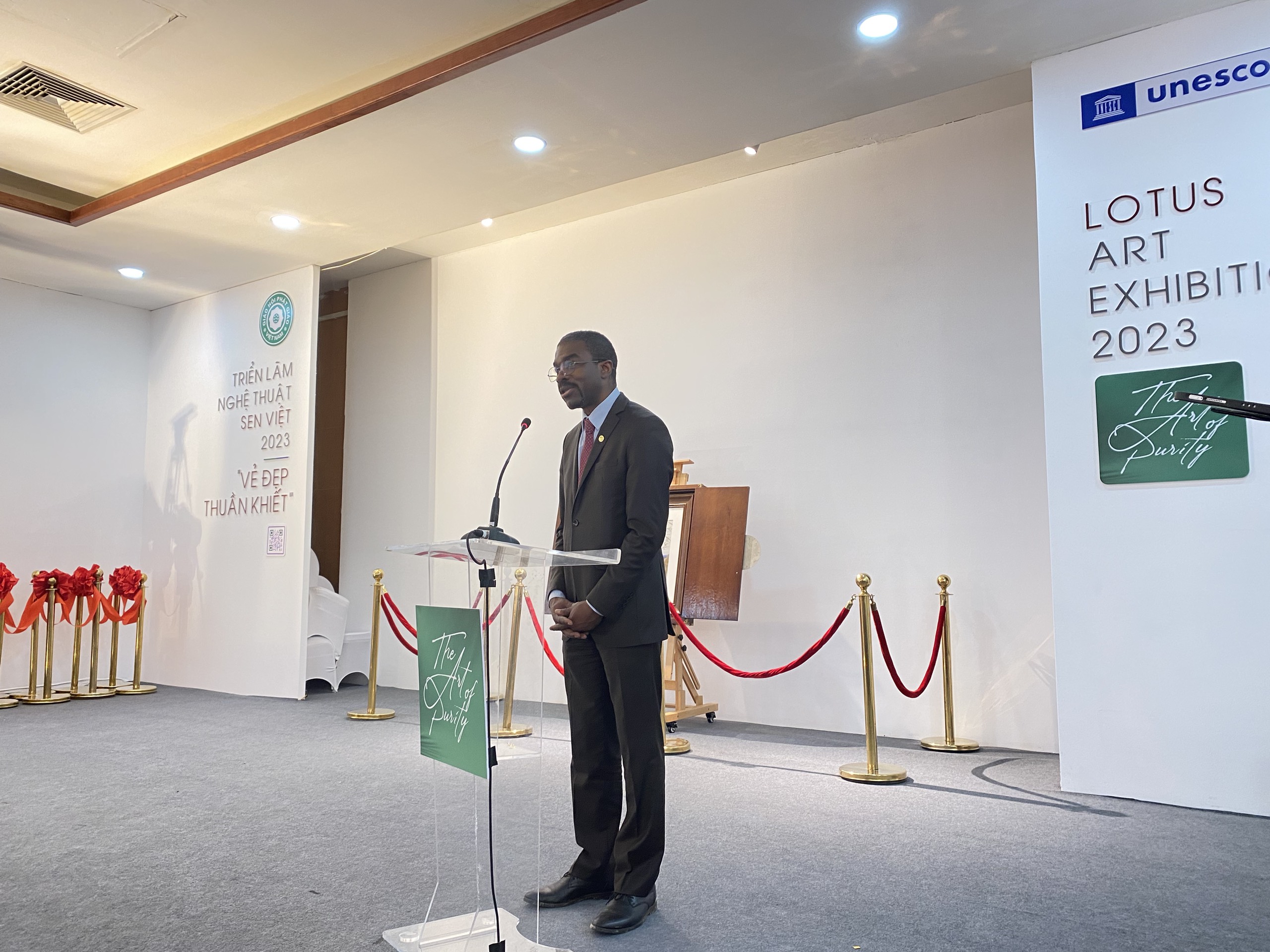 Ông Christian Manhart, Trưởng đại diện UNESCO tại Việt Nam là một chuyên gia hàng đầu về lịch sử nghệ thuật, khảo cổ học và cũng từng nghiên cứu sâu về lịch sử Phật giáo, chia sẻ: “Triển lãm “Nghệ thuật Sen Việt 2023 – Vẻ đẹp thuần khiết” là ngày hội tuyệt vời thể hiện những sáng kiến có tính bao trùm, đầy ý nghĩa và đem đến quan hệ đối tác có thể hỗ trợ cho tầm nhìn về phát triển văn hóa và sáng tạo. Từ đó lan tỏa thông điệp về vẻ đẹp nội tâm cũng như hy vọng về hòa bình”.