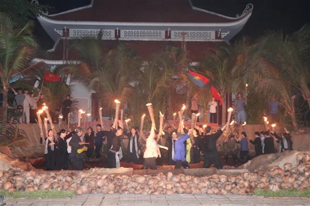 Chương trình nghệ thuật tái hiện những sự kiện quan trọng và thành tựu trong cuộc đời hoạt động cách mạng của nữ tướng Nguyễn Thị Định. Ảnh: Chương Đài/TTXVN |
