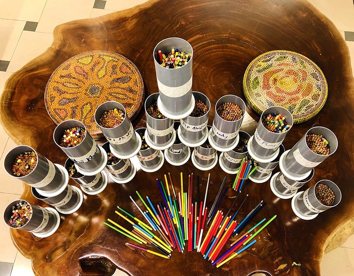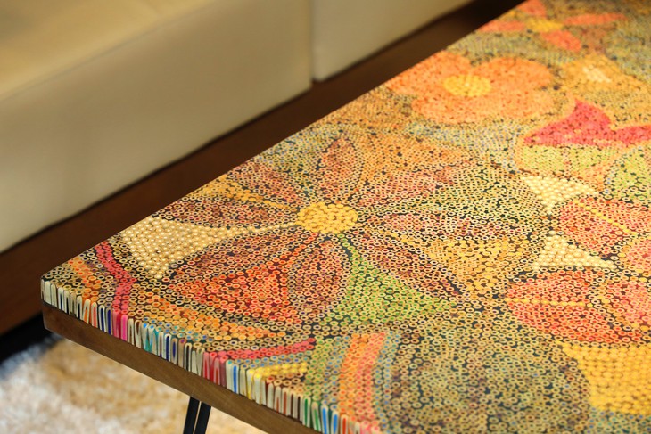 Mặt bàn tuyệt đẹp được tạo tác từ hàng ngàn chiếc bút chì màu - Ảnh: Henry Le Design |