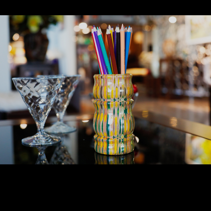Từ những sản phẩm nhỏ xinh có điểm xuyết bút chì như giá để rượu, giá để ly, rồi đến những sản phẩm lớn hơn như đồng hồ đa sắc, rồi những chiếc bàn bút chì, những chiếc đôn trang trí vv...là những đồ nội thất độc đáo từ nguyên liệu là bút chì màu, thương hiệu Henry Le Design của nghệ sĩ, doanh nhân Lê Xuân Hưởng.