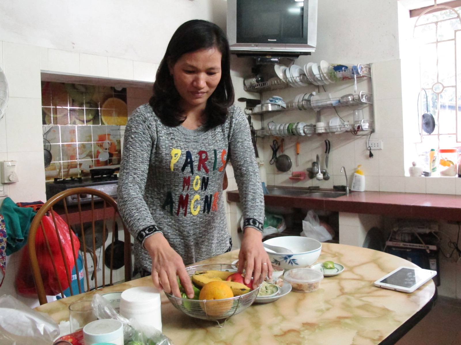Vào mỗi buổi trưa, gia đình cô Nguyễn Thị Thu tại phố Ngọc Thụy, quận Long Biên, Hà Nội thường có 3 người ăn cơm nhưng cô Thu nấu đủ cho 10 – 12 người. Đó là bởi vì trong hai tháng gần đây, cô tham gia vào mô hình Cơm mẹ nấu “Sáng ra khoảng 7h mình đi chợ, xong rồi mình ngâm rửa sạch sẽ xong chế biến sơ qua, và ướp đâu ra đấy, tầm khoảng 9h, 9h30 quay ra nấu. Thường hôm nào nhiều mình cung cấp khoảng 10 suất, hoặc có thể 6-8 suất, ăn cùng với gia đình. Ví dụ gia đình hôm nay ăn món gì thì mình mua cho mọi người ăn món y xì như mình. Mình nấu quá ra một chút rồi bớt lại nhà mình ăn rồi nấu cho mọi người. Đó là quy trình nấu như thế”