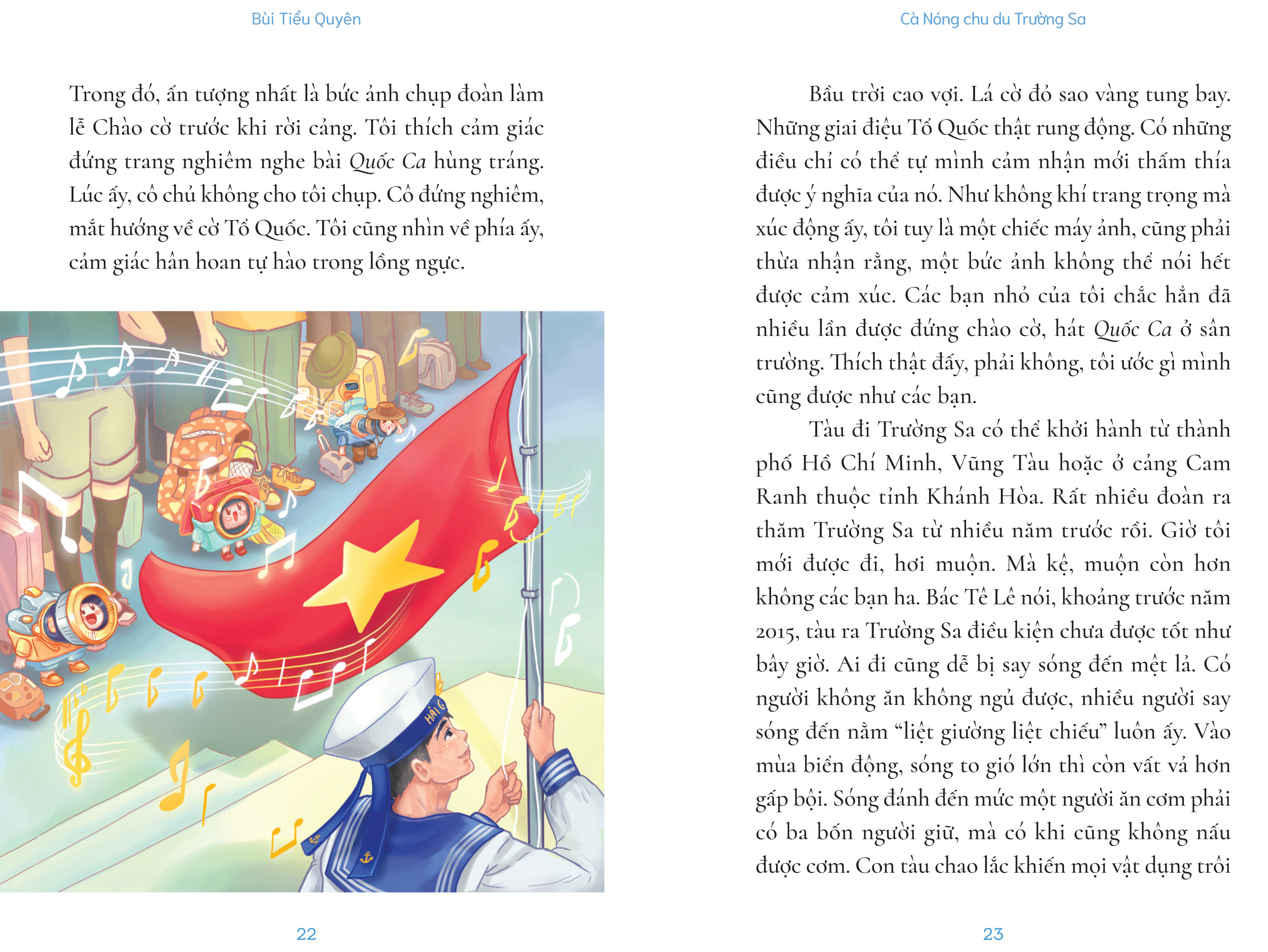 "Cà Nóng chu du Trường Sa" ôm chứa những kiến thức về biển đảo, thiên văn, về lịch sử… nhưng không hề khô khan, mà hiện lên đầy tự nhiên, thậm chí có những đoạn như… cổ tích, nhiều mê hoặc. Những chân trời kiến thức mở ra. Những cảm xúc ngân rung theo biển đảo thiêng liêng Tổ quốc, theo những câu chuyện lịch sử.