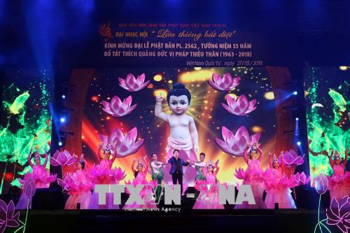 Tối 27/5, tại Việt Nam Quốc Tự, Ban Văn hóa Giáo hội Phật giáo Việt Nam Thành phố Hồ Chí Minh tổ chức Chương trình Đại nhạc hội “Lửa thiêng bất diệt” kính mừng Đại lễ Phật đản Phật lịch 2562 (Dương lịch 2018).