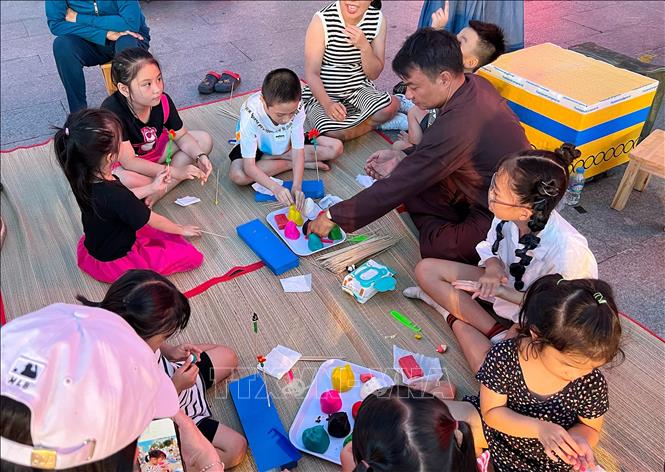 Các thiếu nhi tham gia làm tò he. Ảnh: Thu Hương/TTXVN |