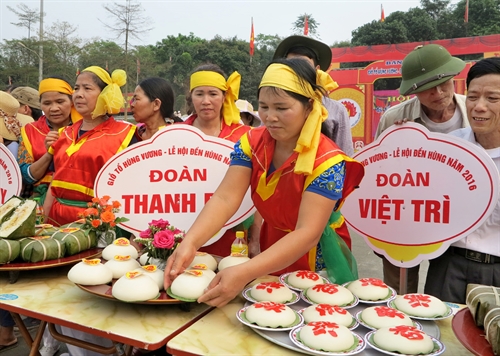 Tại Khu di tích lịch sử Đền Hùng, diễn ra Hội thi “Gói, nấu bánh chưng, giã bánh giầy dâng lên Vua Hùng”. Đây là hội thi được tổ chức hàng năm để tỏ lòng biết ơn, tri ân công đức các Vua Hùng đã tạo dựng nên một phong tục đẹp của dân tộc. Hai đội đoạt giải Nhất hội thi sẽ được gói, nấu bánh chưng, giã bánh giầy dâng lên Vua Hùng vào ngày 10/03 Âm lịch năm 2017.