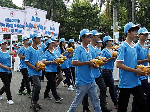 | Hơn 10.000 người tham gia đi bộ vào sáng 3-8-2013 vì nạn nhân chất độc da cam và người khuyết tật nghèo - Ảnh: Báo Người lao động |