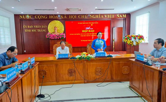 Phó Chủ tịch UBND tỉnh Sóc Trăng Huỳnh Thị Diễm Ngọc phát biểu tại buổi họp báo. Ảnh: sggp.org.vn |