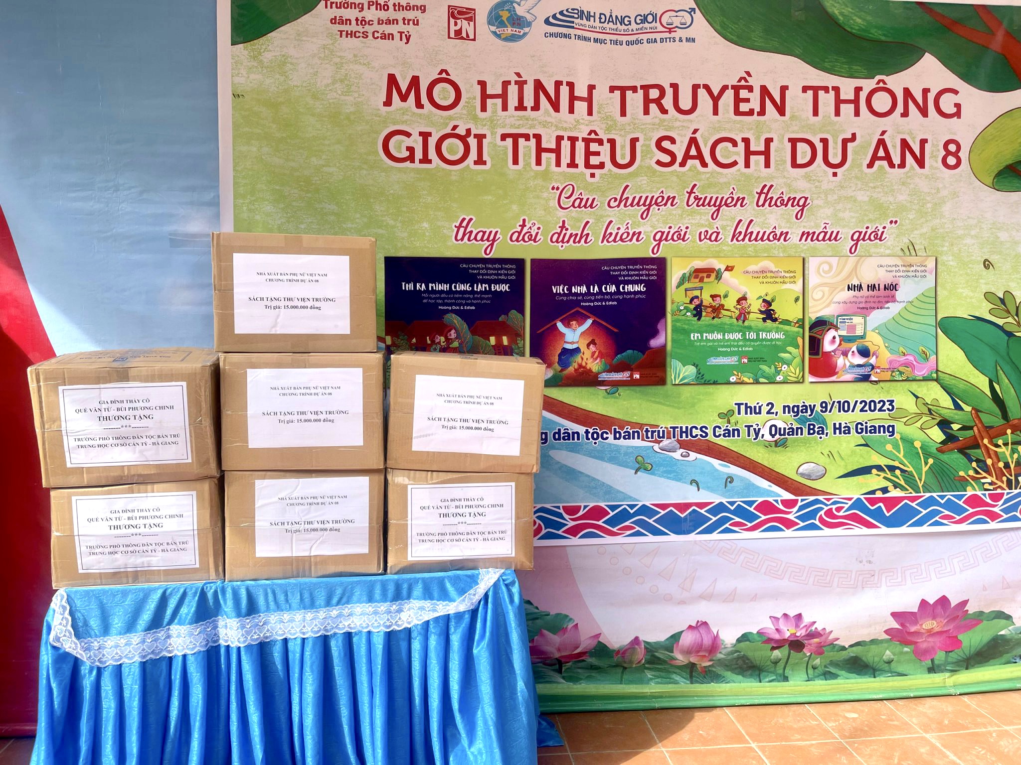 Nhân dịp này, NXB Phụ nữ Việt Nam đã trao tặng tủ sách cho Trường Trung học cơ sở Cán Tỷ, Quản Bạ, tỉnh Hà Giang trị giá 15.000.000 đ.