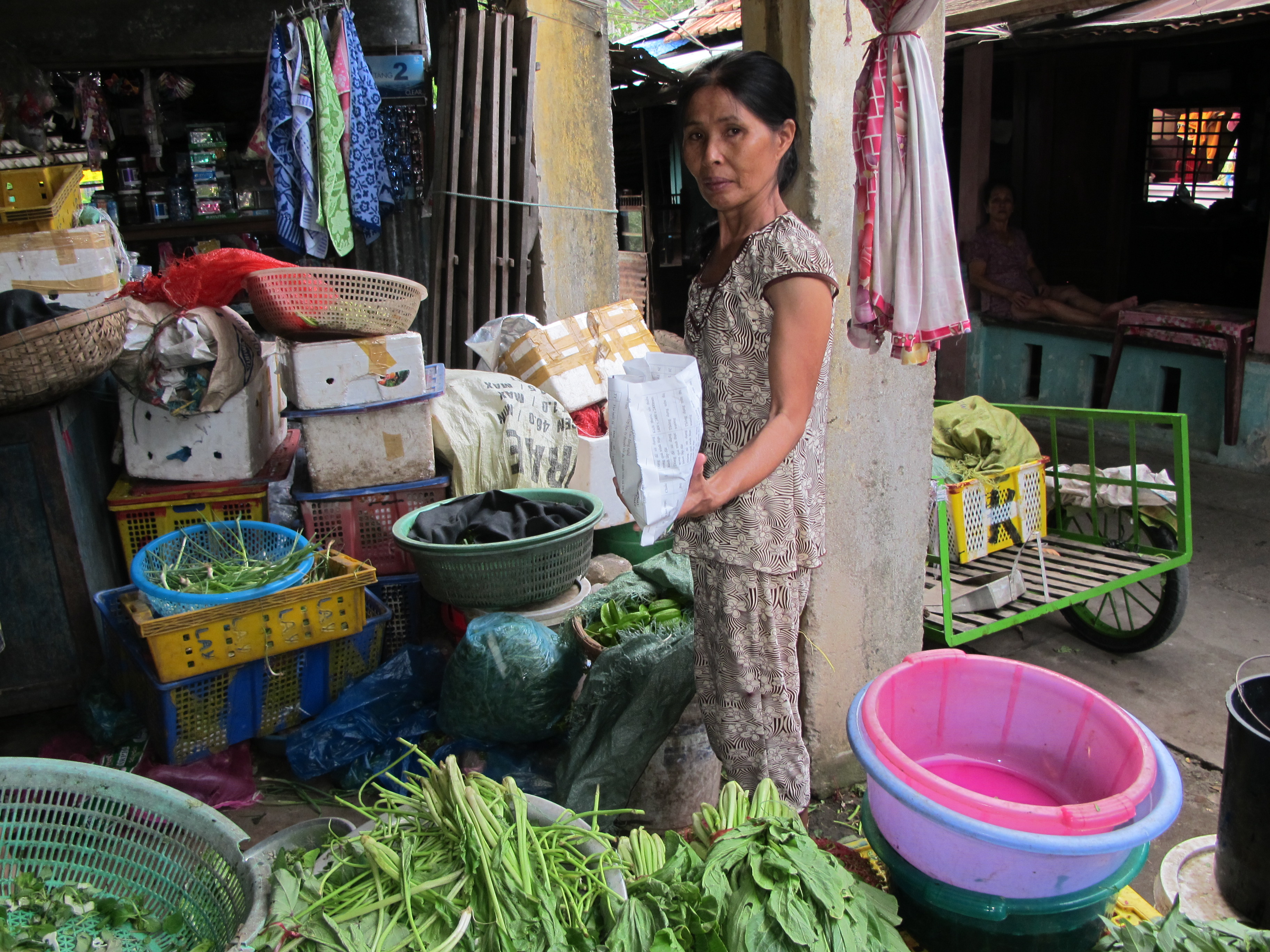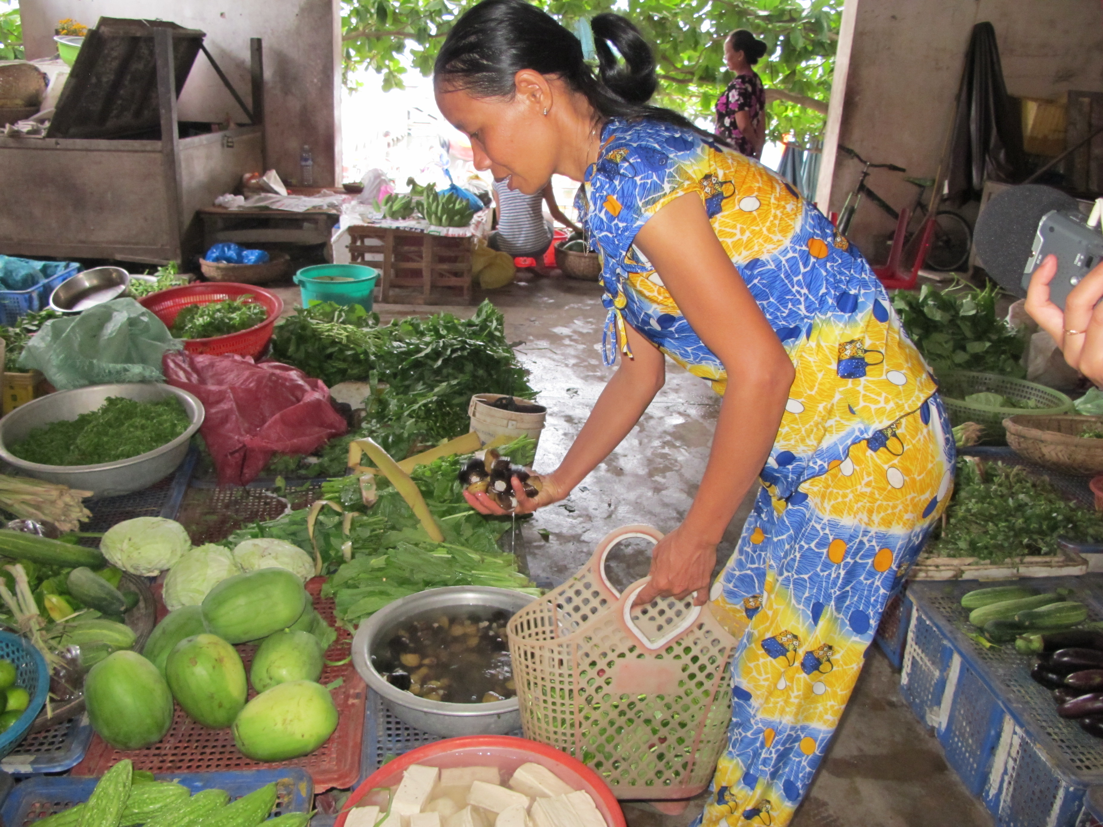 Chợ nhỏ trên xã đảo Tân Hiệp tấp nập người bán kẻ mua và dễ dàng nhận ra người mua đến chợ trên tay đã thủ sẵn một giỏ nhựa, còn người bán thì bày bên cạnh những món hàng các xấp giấy báo, lá chuối để gói ghém các loại thực phẩm. Không có túi nilon, tuy hơi khó khăn trong việc đựng các loại thực phẩm chất lỏng và ướt, nhưng nhìn chung “Nói không với túi nilon” không gây khó khăn đến việc mua bán. Tùy theo loại thực phẩm mà người bán sử dụng những vật dụng khác nhau để đựng, trừ bao nilon. Bà Mai Tâm cho biết: Trước kia môi trường ở đây không sạch. Sáng ra lúc nào cũng thấy đầy túi nilon dạt vào xung quanh đảo. Giờ thì khác rồi, môi trường sạch sẽ. Người dân đã quen thuộc với việc đi chợ cầm làn và đựng bằng túi giấy.