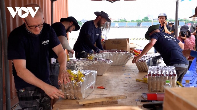 Trận địa pháo hoa của hai đội Phần Lan và Trung Quốc trước giờ khai cuộc. Ảnh: Vinh Thông/VOV |