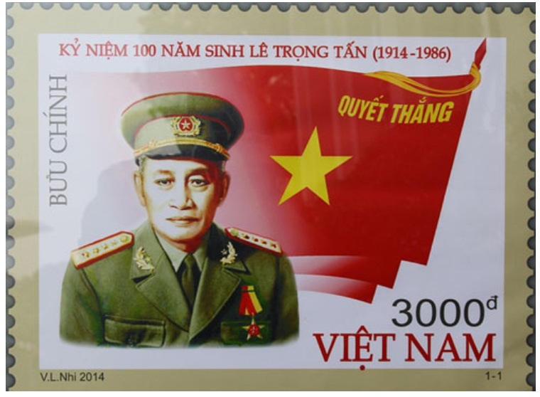 (VOV5)- Bộ tem bưu chính “Kỷ niệm 100 năm sinh Lê Trọng Tấn” chính thức phát hành ngày 1/10/2014, đúng ngày sinh nhật của Đại tướng.