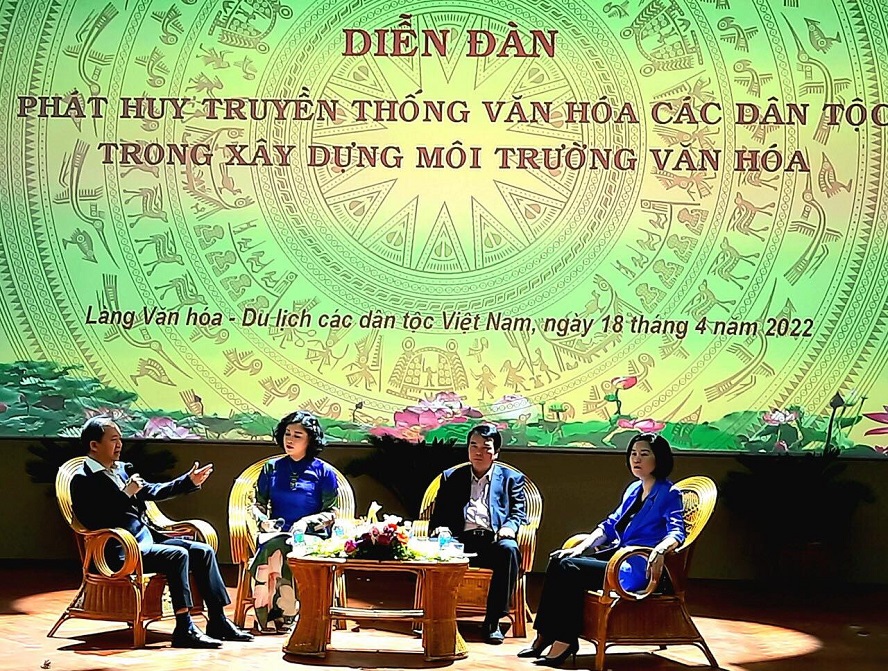 Ngày 18/4, Diễn đàn văn hóa với chủ đề “Phát huy truyền thống văn hóa các dân tộc trong xây dựng môi trường văn hóa” đã diễn ra tại Làng Văn hóa - Du lịch các dân tộc Việt Nam (thị xã Sơn Tây, Hà Nội).