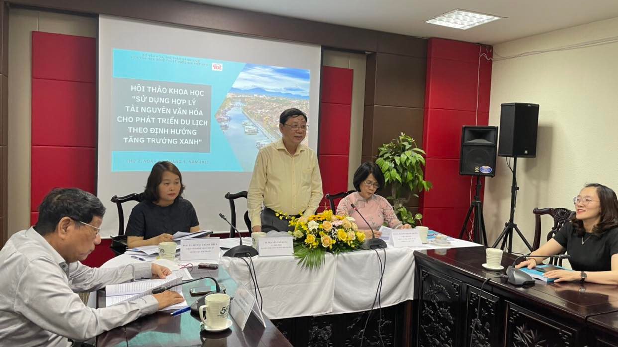 Tại hội thảo, PGS TS Đỗ Thị Thanh Thủy, Trưởng ban nghiên cứu Văn hóa, Viện Văn hóa Nghệ thuật quốc gia Việt Nam khẳng định: “Quá trình phục hồi kinh tế xã hội của đất nước ta sau hậu quả của đại dịch COVID đặt ra yêu cầu chúng ta cần phải tiếp tục nhận thức đầy đủ hơn, hành động nhanh hơn và quyết liệt hơn, để đối phó với tình trạng khẩn cấp về khí hậu và môi trường, với các hiểm họa sống còn xuất phát từ sự mất cân bằng giữa con người và tự nhiên. Tài nguyên văn hóa, với tư cách như một nguồn quan trọng của sáng tạo và đổi mới, của các giá trị đa chiều về tinh thần và vật chất, có thể đem lại những tiềm năng to lớn và hỗ trợ quá trình chuyển đổi gắn với du lịch tăng trưởng xanh, cũng như để hướng tới mục tiêu tổng thể vì một nền kinh tế và xã hội lành mạnh, xanh và công bằng hơn.”