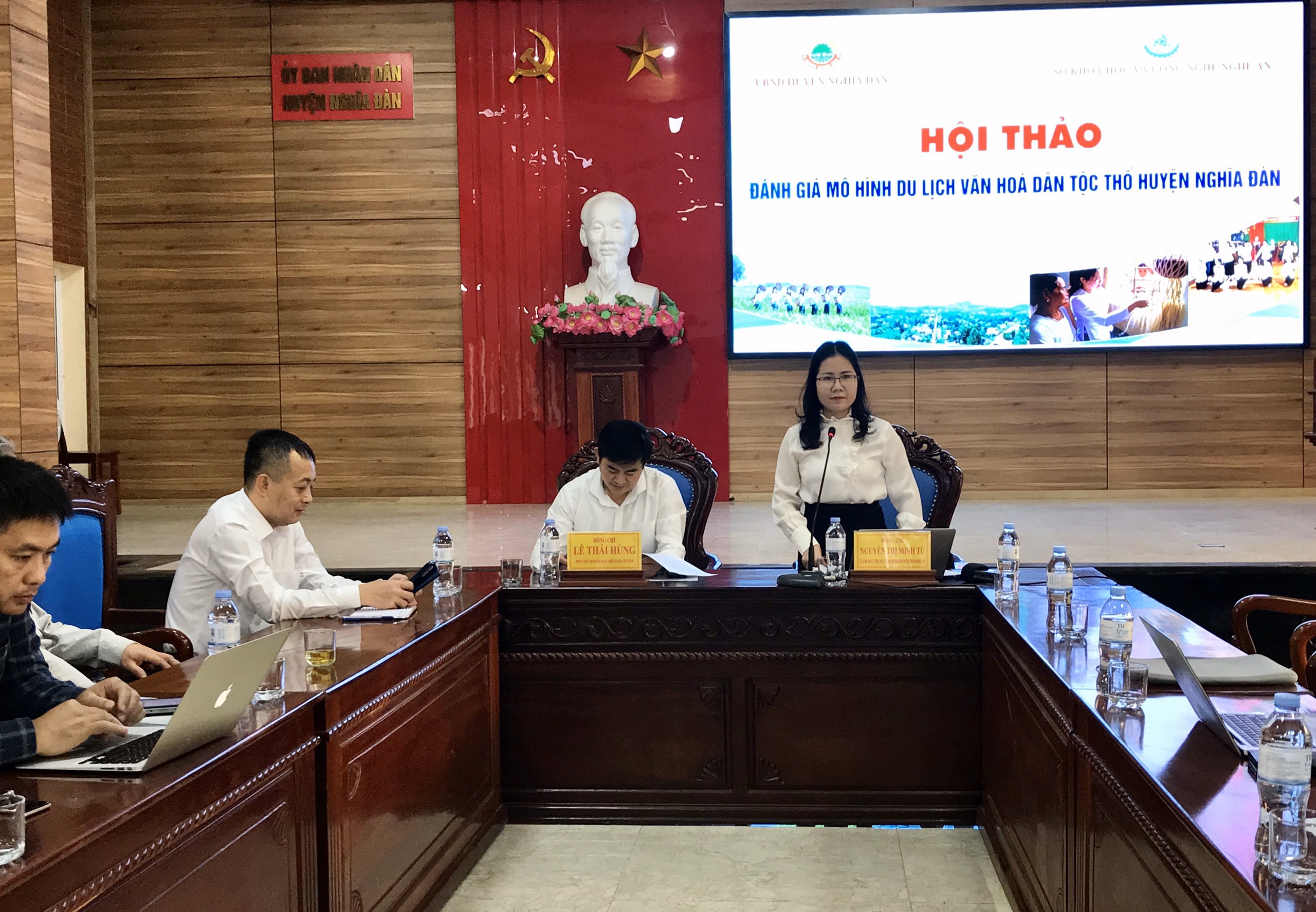 Tại hội thảo, Tiến sĩ Lê Thị Hiếu, Trung tâm Khoa học, xã hội và nhân văn, Sở Khoa học và Công nghệ Nghệ An, cho biết địa điểm chọn xây dựng mô hình là xã Nghĩa Lợi, huyện Nghĩa Đàn, nơi có đa số đồng bào Thổ sinh sống. Mô hình tập trung xây dựng việc nâng cao nhận thức cộng đồng, kỹ năng làm du lịch về tri thức dân ca, dân vũ; khai thác nghề đan võng sử dụng từ cây gai của đồng bào Thổ; sử dụng những bài thuốc dân gian để du khách trải nghiệm…