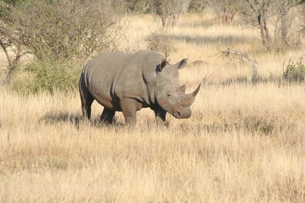 Một cá thể tê giác tại Vườn Quốc gia Kruger Park của Nam Phi. Ảnh: Phi Hùng/TTXVN |