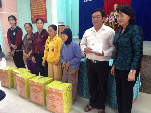 Phó Chủ tịch nước Đặng Thị Ngọc Thịnh trao 100 suất quà tặng 100 hộ gia đình tại xã Điện Phương, thị xã Điện Bàn, mỗi suất trị giá 1 triệu đồng; trao 200 triệu đồng hỗ trợ đồng bào bị thiệt hại do lũ lụt tại xã Duy Vinh và huyện Duy Xuyên.