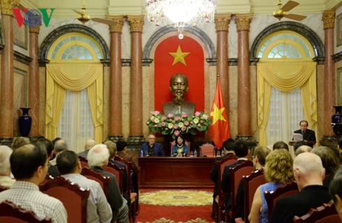 Sáng 18/2, tại Phủ Chủ tịch, Phó Chủ tịch nước Đặng Thị Ngọc Thịnh tiếp Đoàn đại biểu quốc tế dự hội nghị quốc tế quảng bá văn học Việt Nam lần thứ 4 và Liên hoan thơ quốc tế lần thứ 3.